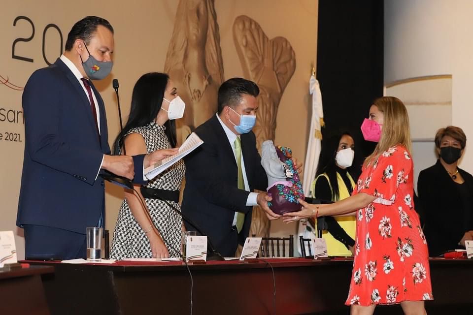 Metepec, México; 15 de octubre de 2021. En Sesión Solemne de Cabildo donde fue celebrado el 173 Aniversario del Decreto donde se otorgó el Título de Villa a Metepec, la alcaldesa Gaby Gamboa Sánchez, entregó Preseas a ciudadanos distinguidos por su aportación al desarrollo de la demarcación.