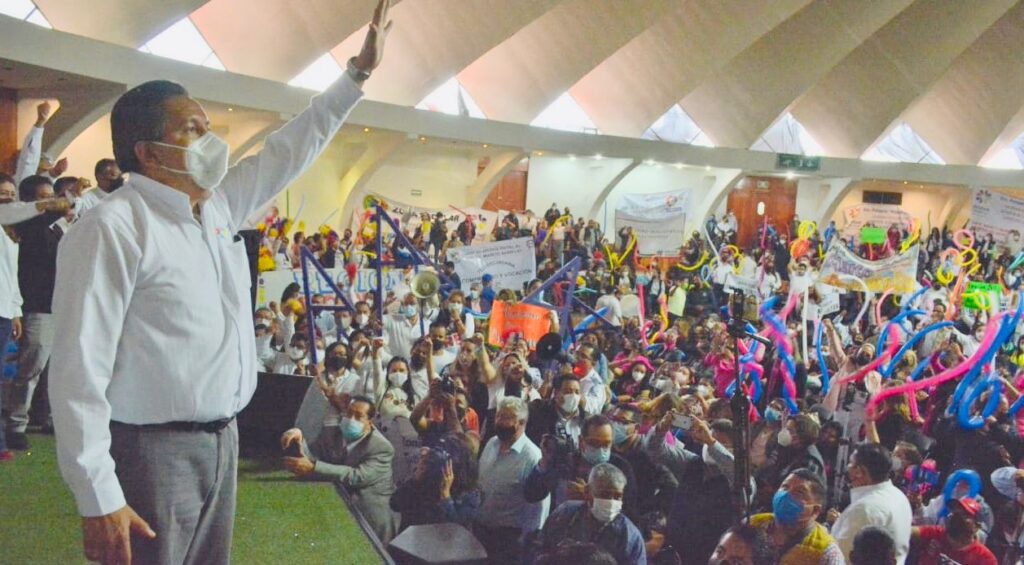 “Gracias maestras, gracias maestros por estar respaldando un extraordinario proyecto de unidad, de Unidad Sindical”, expresó el candidato al iniciar su mensaje al magisterio.