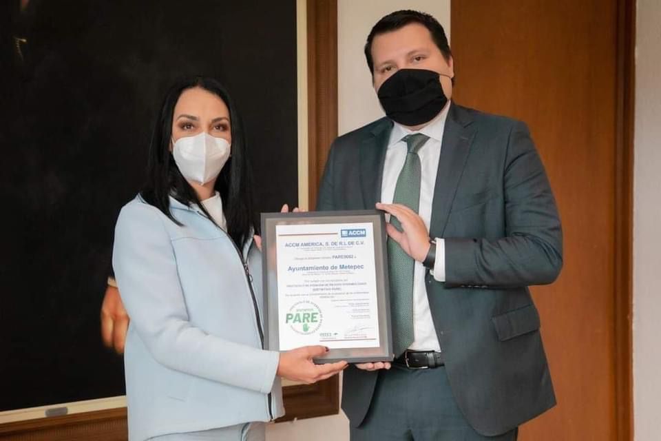 Entre los logros, resalta, el reconocimiento a Metepec con el premio “Escoba de Platino”, otorgado por la empresa “Ategrus” en el marco del concurso internacional “Escobas”, celebrado en Madrid España por su esfuerzo e innovaciones introducidas en el ámbito de Gestión de Residuos Sólidos Urbanos.
