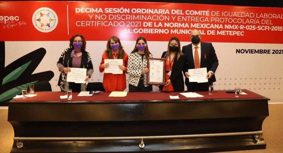 También, el Ayuntamiento de Metepec, es un espacio libre de violencia machista, mediante el mantenimiento de la Certificación de la Norma Mexicana NMX-R-0254 SCFI-2015 y es el primer municipio a nivel Nacional que cuenta con Cartas Compromiso Con el Ciudadano (38), y a su vez, el primer municipio que logra la Certificación y reconocimiento a nivel Internacional.