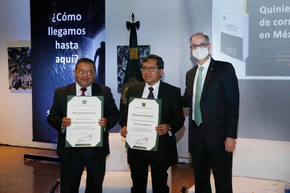 Toluca, Méx; 10 de diciembre de 2021. Contamos con la capacidad técnica y decidida voluntad de establecer la cultura de la transparencia y la rendición de cuentas en la Universidad Autónoma del Estado de México (UAEM), sostuvo el rector Carlos Eduardo Barrera Díaz, al presentar el libro “Quinientos años de corrupción en México. ¿Cómo llegamos hasta aquí? ¿Cómo salimos de aquí?”.