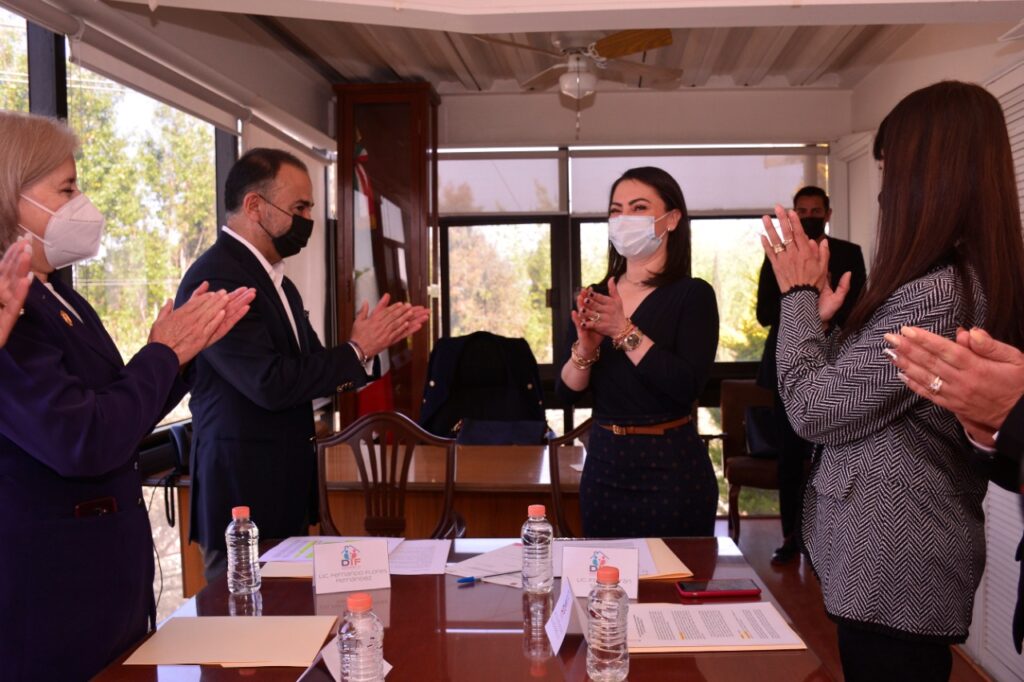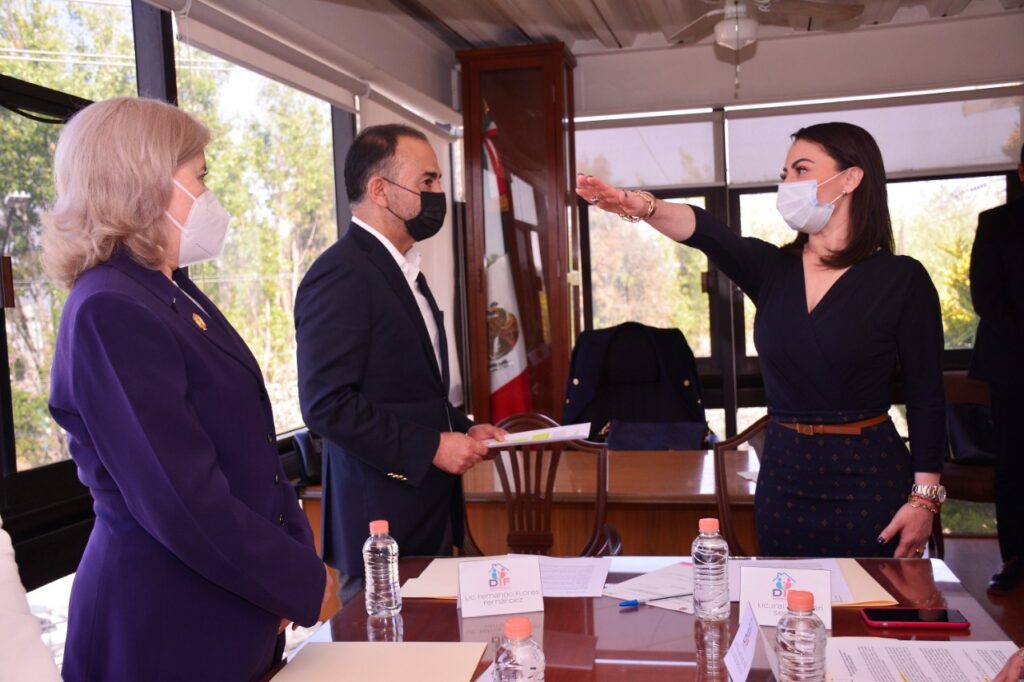 Ante el alcalde de Metepec, Fernando Flores Fernández, Iraí Albarrán Segura, rindió protesta como Presidenta Honoraria del Sistema Municipal para el Desarrollo Integral de la Familia (SMDIF) Metepec. * Se llevó a cabo la Primera Sesión Ordinaria e Instalación de la Junta de Gobierno Municipal del SMDIF, integrada por la titular del Organismo asistencial, Iraí Albarrán Segura; María Elisa Quijada Badillo, Directora General del SMDIF; Margarita Berenice Zuñiga Becerril, Encargada del despacho de la Dirección de Finanzas y Administración; . Esmeralda de Luna Sánchez, Directora de Equidad de Género del Ayuntamiento de Metepec y Jaquelina Marín Marín, Cuarta Regidora del Ayuntamiento de Metepec. Cercanía, transparencia y lealtad serán los valores con los que se maneje el nuevo personal del DIF hacia los metepequenses. “Aquí están las mujeres y los hombres que pintarán de amor, de esperanza, de fe la vida de nuestros vecinos. Ustedes serán el corazón, el alma, el apoyo, la mano solidaria, el hombro, el pecho de mi gobierno. Combatirán el hambre, la sed, el frío, la enfermedad, la soledad y la violencia”, señaló el Presidente Municipal. Se recorrieron las instalaciones de la Unidad de Rehabilitación e Integración Social (URIS), donde se verificó el estado de los equipos para las terapias, se presentó el uso de cada área del edificio y se tuvo la oportunidad de ser testigos del avance de los pacientes que son atendidos en la Unidad. Se llevó a cabo la Toma de protesta de los nuevos Directores del Sistema Integral para el Desarrollo de la Familia.