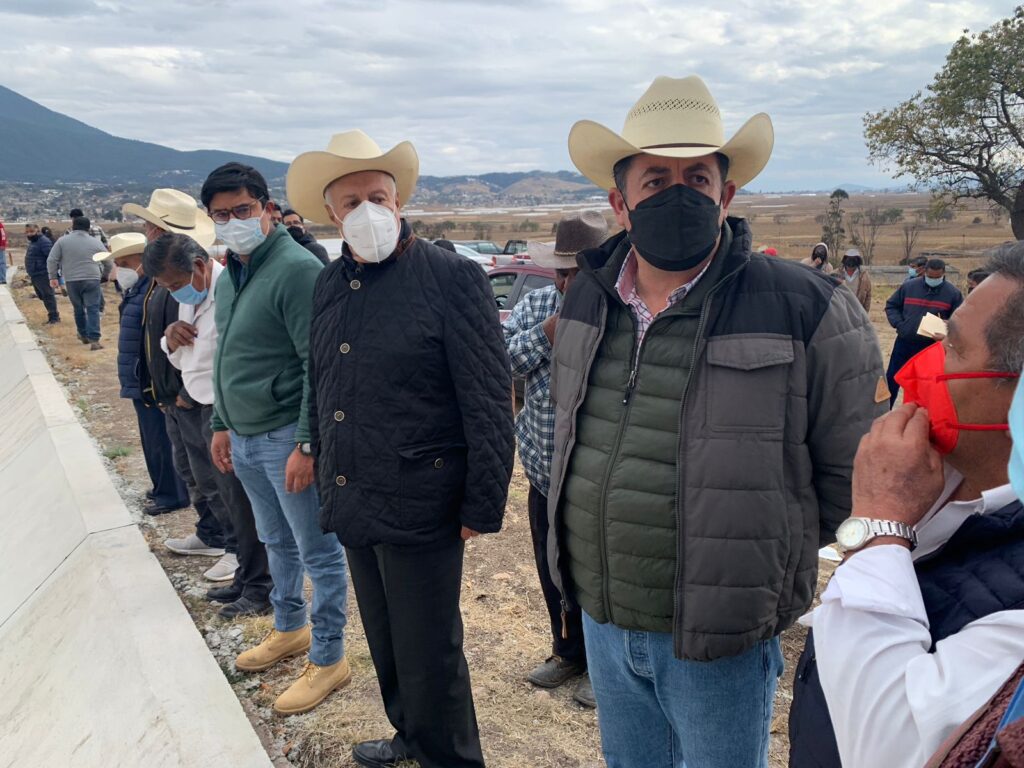 En el acto de supervisión estuvo acompañado del diputado federal Gustavo Cárdenas Monroy y del cuarto regidor de Atlacomulco, Héctor Cárdenas, quienes refrendaron la importancia de aprovechar el agua pluvial en los campos de cultivo.