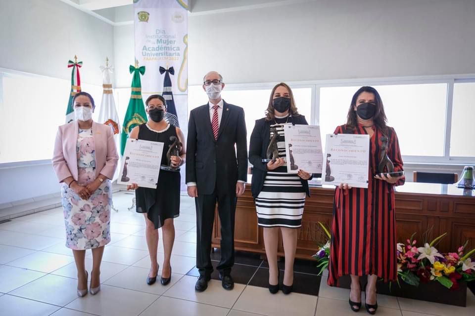 En este marco, otorgó la presea promovida por la Federación de Asociaciones Autónomas de Personal Académico de la institución (FAAPAUAEM) a la Mujer Académica Universitaria, en su versión 2022, a Miriam García García y Jackeline Valentine Dávila Montiel, profesoras adscritas al plantel “Nezahualcóyotl” de la Escuela Preparatoria, así como a la maestra Jeny Álvarez Botello, adscrita a la Unidad Académica Profesional Cuautitlán Izcalli, por su trabajo académico dentro de la Máxima Casa de Estudios mexiquense.