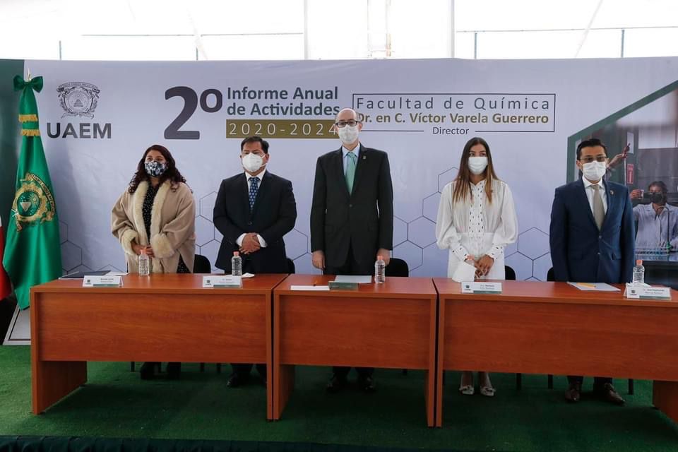 En el marco del segundo informe anual de actividades del director de la Facultad de Química, Víctor Varela Guerrero, el rector de la Autónoma mexiquense hizo entrega del Edificio Anexo de dos niveles, conformado por dos laboratorios, sala de cómputo, tres aulas, espacio de cubículos y sanitarios, así como la rehabilitación de la cancha de básquetbol.