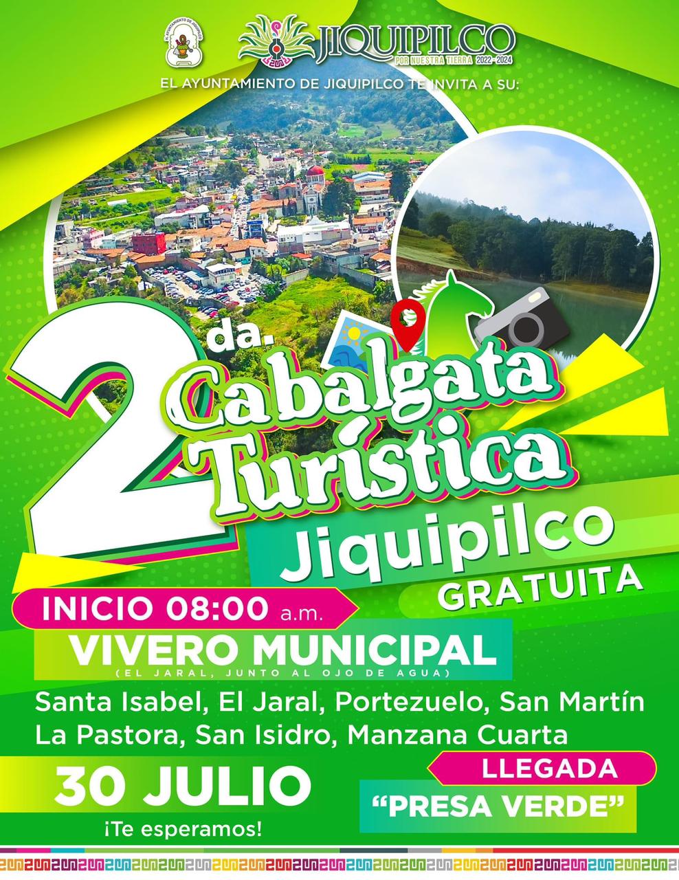 Con el objetivo de promover las tradiciones e impulsar la economía de la zona rural, autoridades municipales en coordinación con el Comité Organizador, dieron a conocer las actividades de la Segunda Cabalgata Turística Jiquipilco. Misma que se llevará a cabo el próximo 30 de julio y que dará inicio a las 8:00 de la mañana.… Seguir leyendo ACUDE Y DIVIÉRTETE EN LA SEGUNDA CABALGATA TURÍSTICA JIQUIPILCO